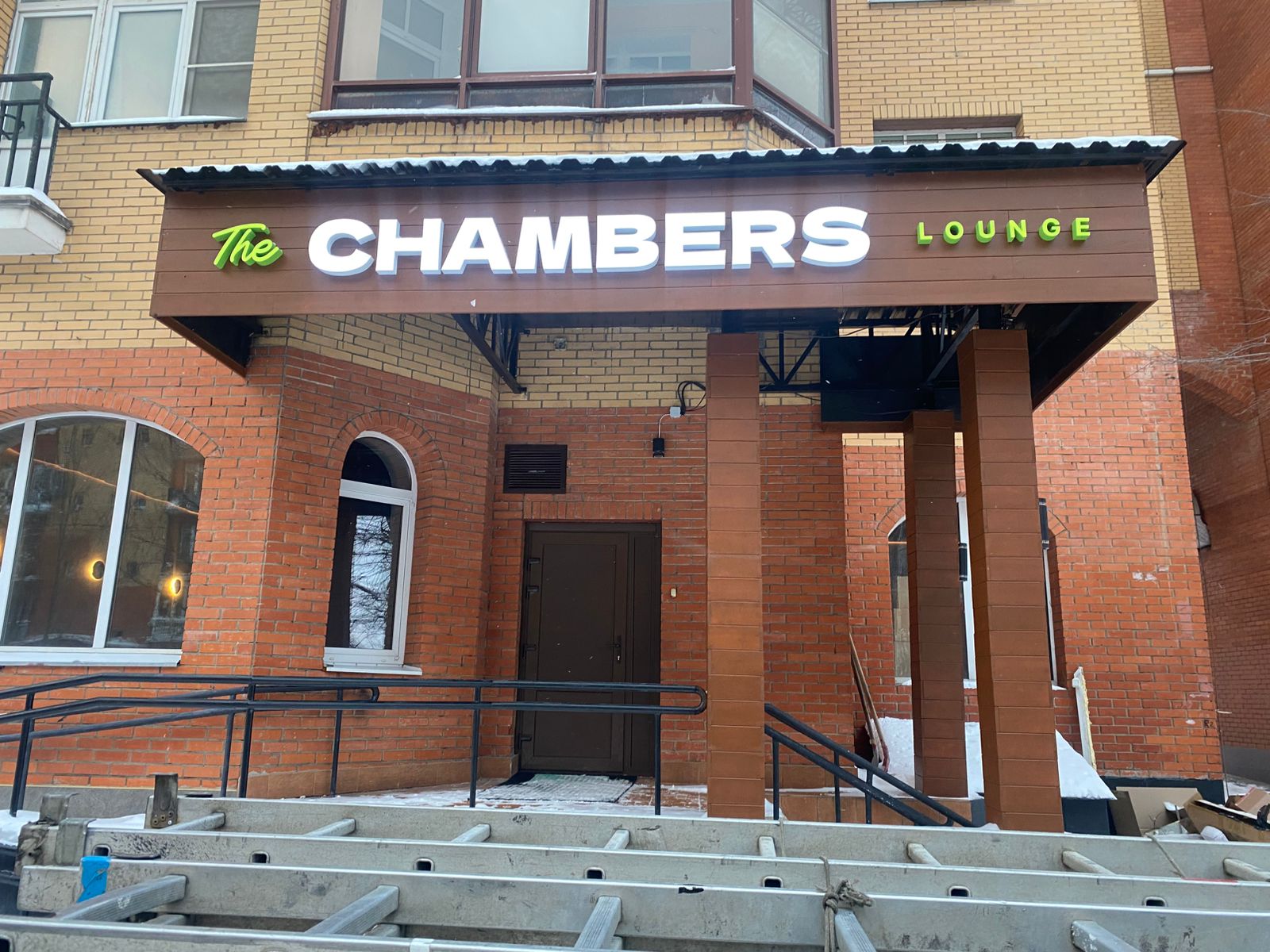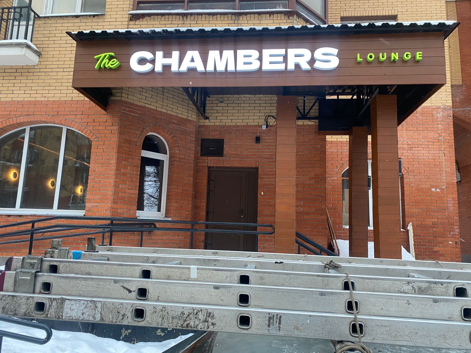 Для лицевой подсветки использовали светодиодную ленту нейтрального белого света 5000 К. Ленту закрепили на заднюю часть букв, а стыки для защиты от влаги залили жидким пластиком Cosmofen. Блок питания с уровней защиты IP67 спрятали в антивандальный короб за вывеской.