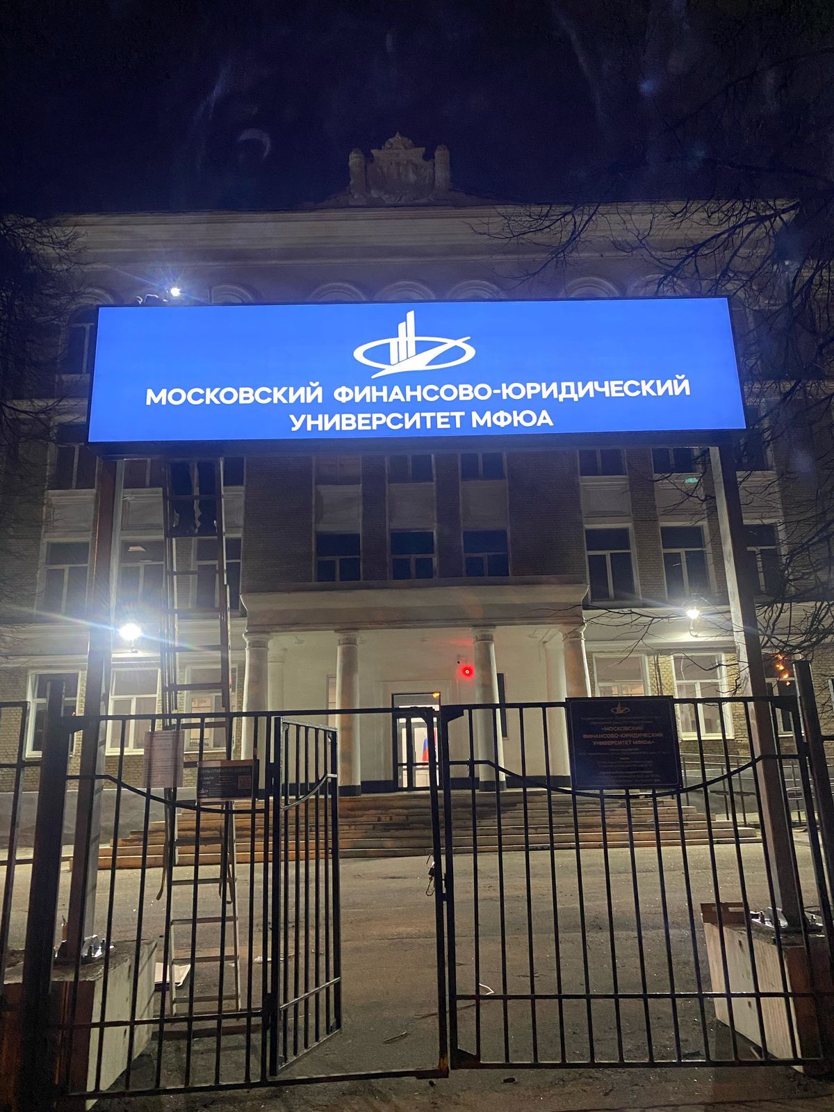 Доставка и монтаж требовался по адресу: Чапаевский пер., 3, Москва. Вывеска с влагозащитой IP67 установлена на земле, возле здания клиники. Для разметки отверстий использован лазерный уровень. Кабели уложили в кабель-канал. Логотип установлен с учётом требований к обслуживанию и очистке светового логотипа. Установка вывески произведена на каркасную раму. На монтаж ушло 9 часов.