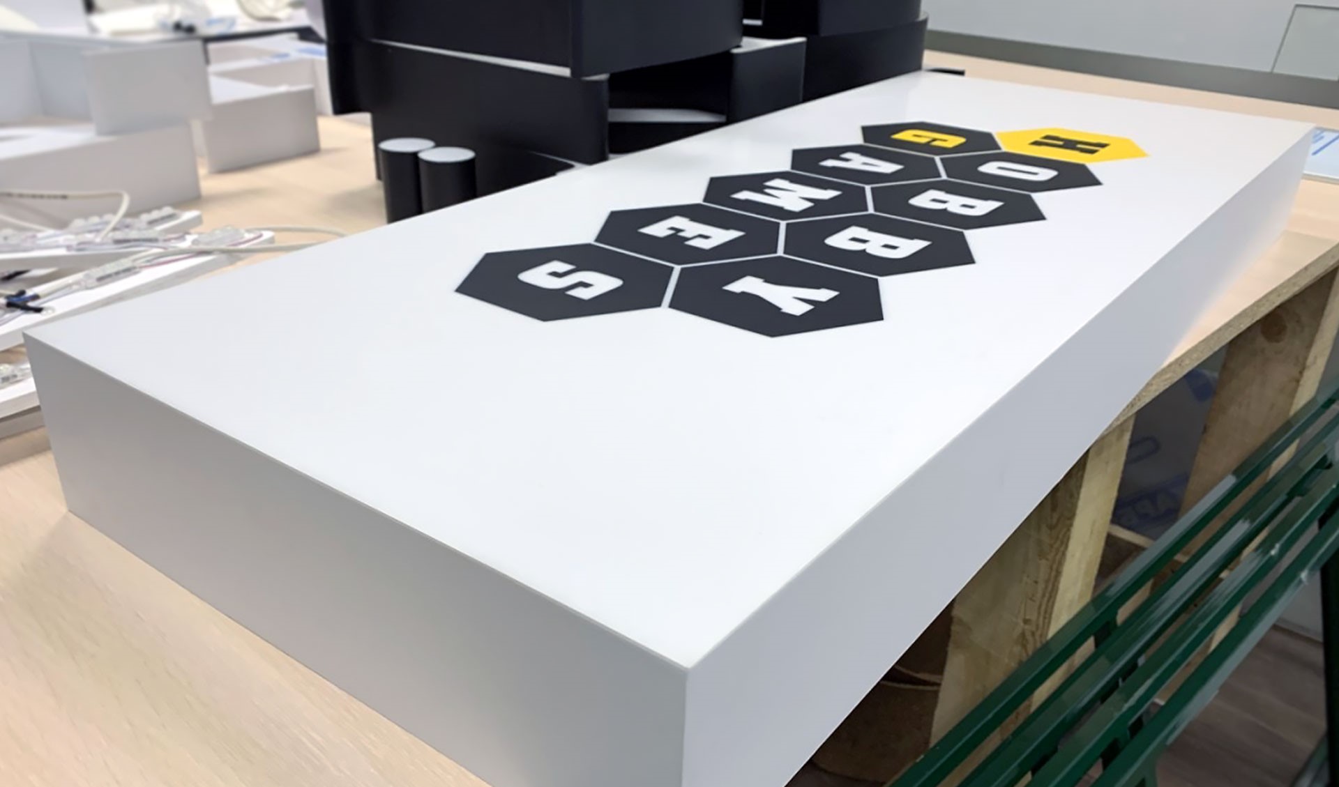 Для изготовления вывески использовали фрезерный станок с ЧПУ модели JBT-1325W. Для гибки борта мы применили современный гидравлический листогибочный пресс TS0500-1 мощностью более 5 кВт.